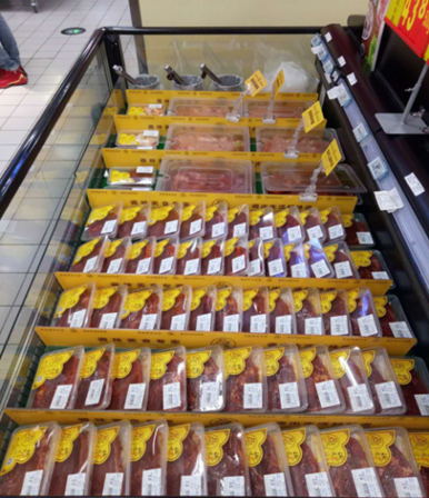 1、数量上大量陈列。摆放方式上促销及主打产品阶梯倾斜,其余平铺陈列,制造丰富感;